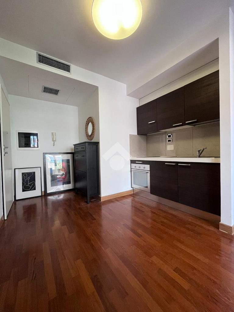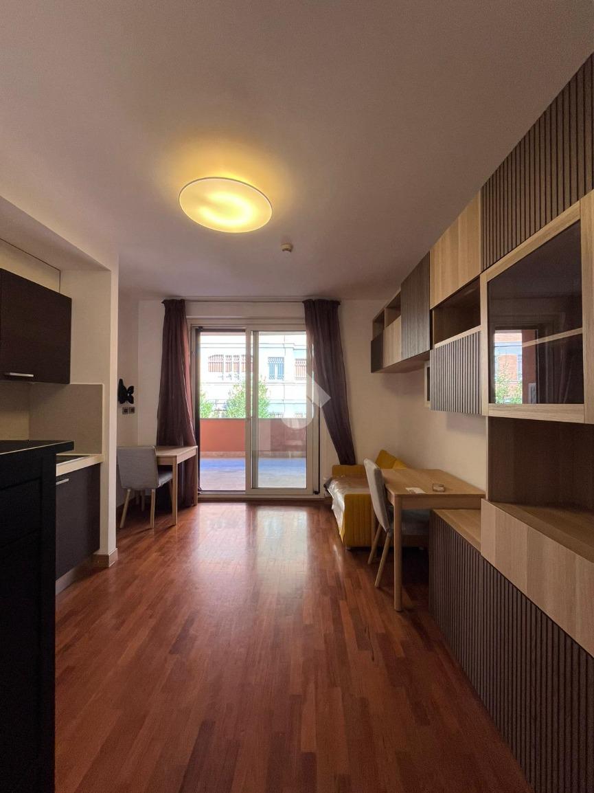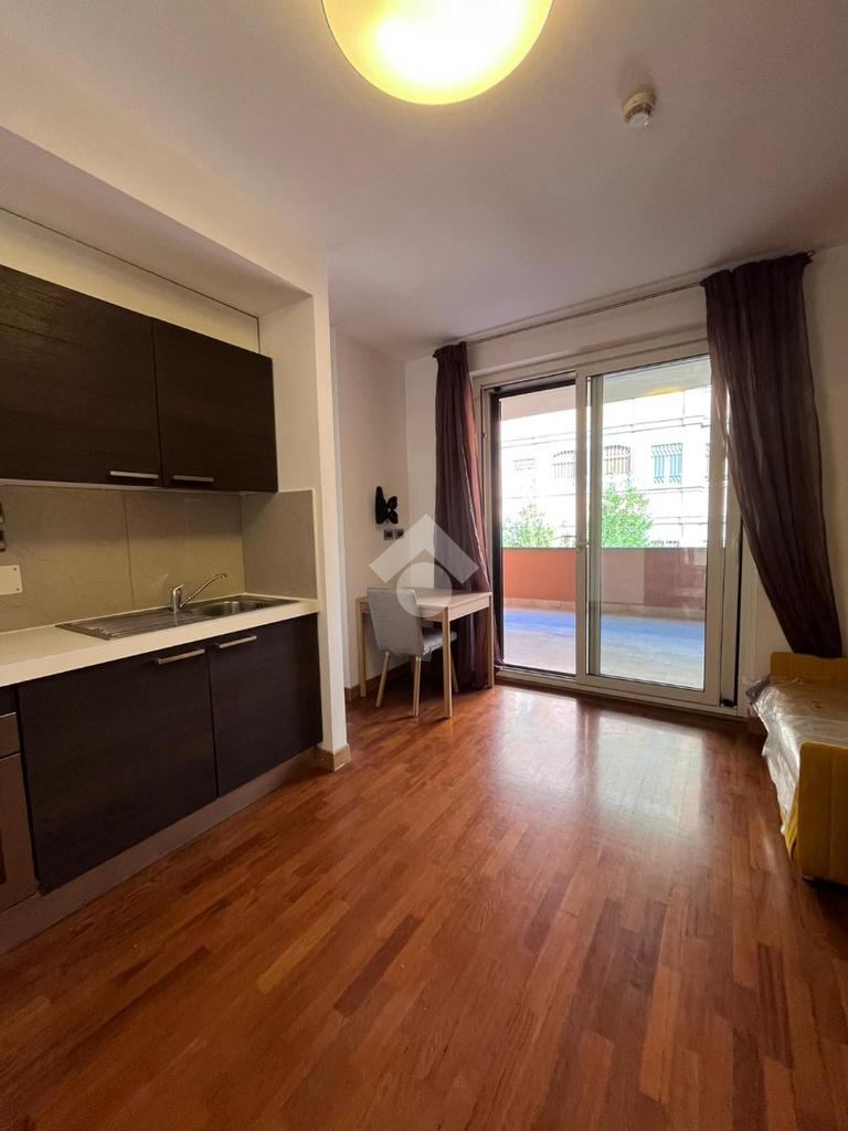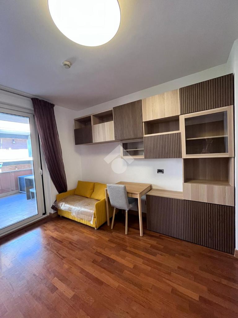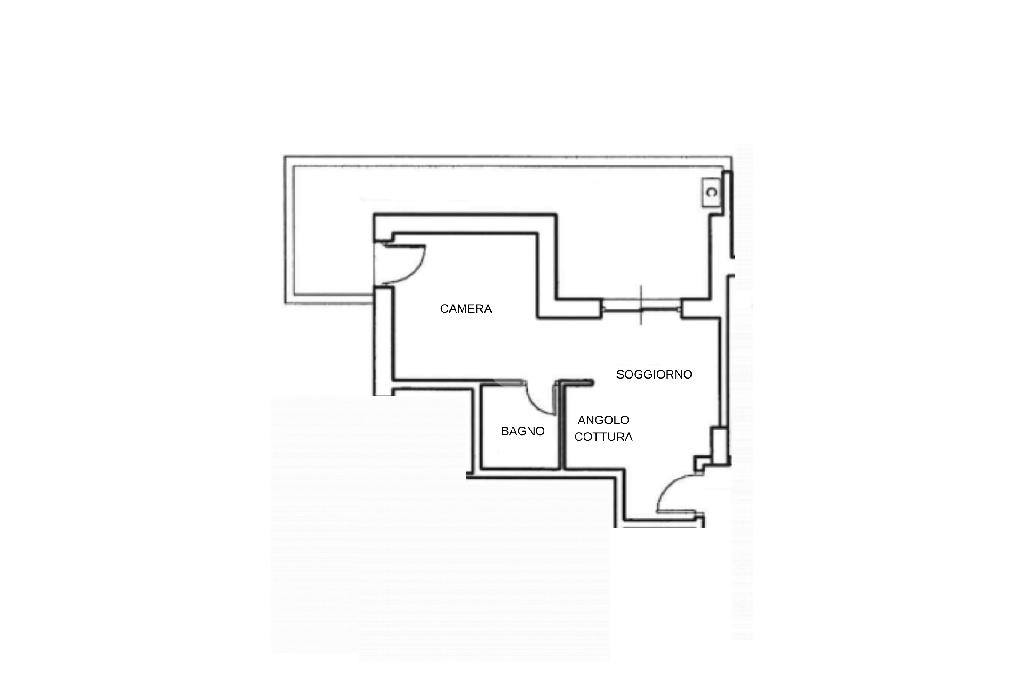L'immobile si compone di ambienti moderni e luminosi: l'ingresso conduce ad un luminoso soggiorno con cucina a vista; da questo si può accedere alla camera matrimoniale e al bagno in travertino con doccia.