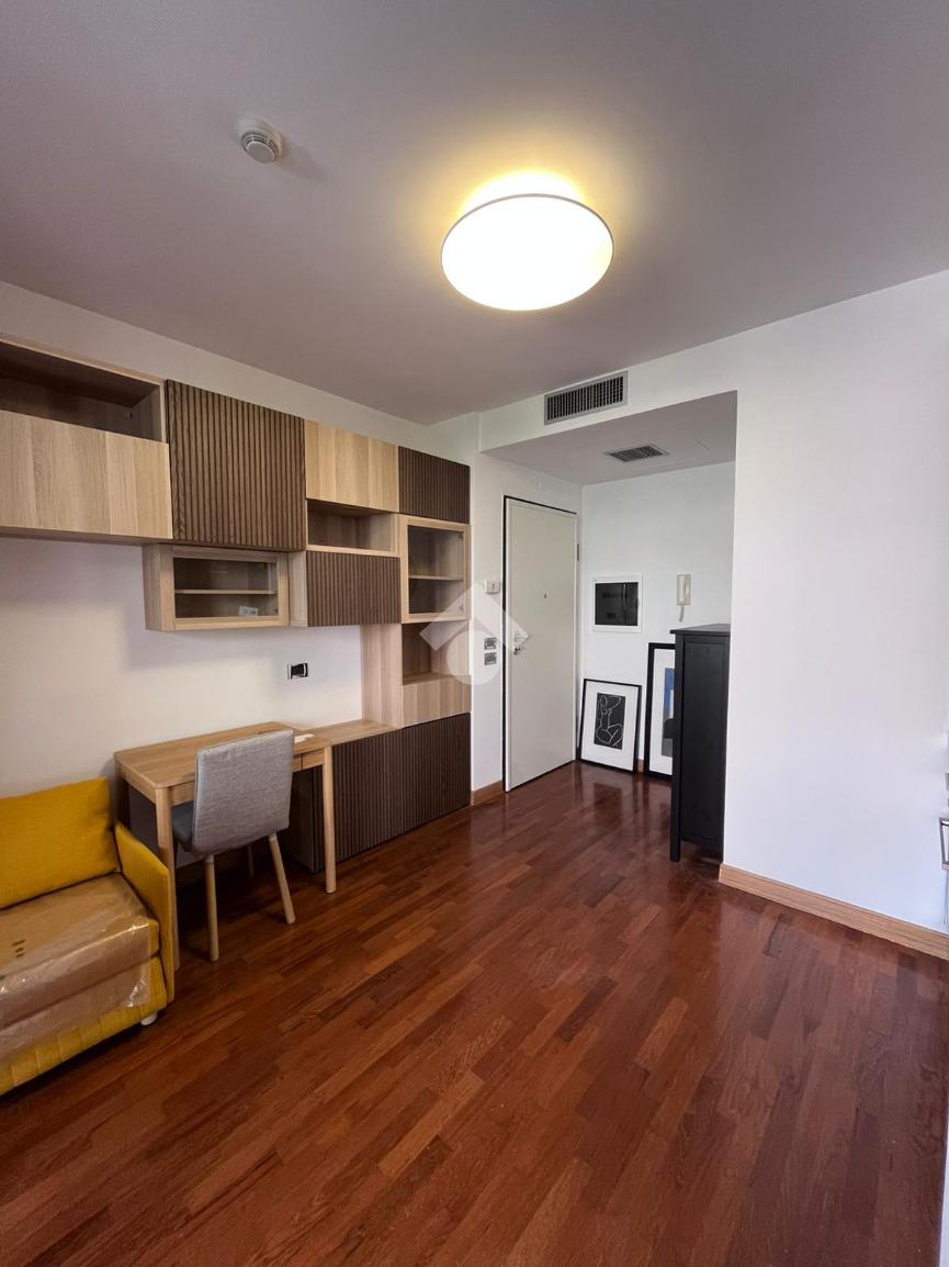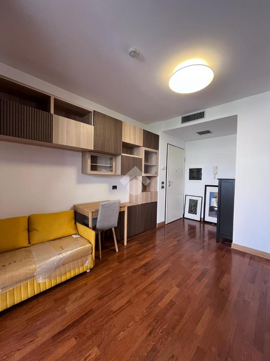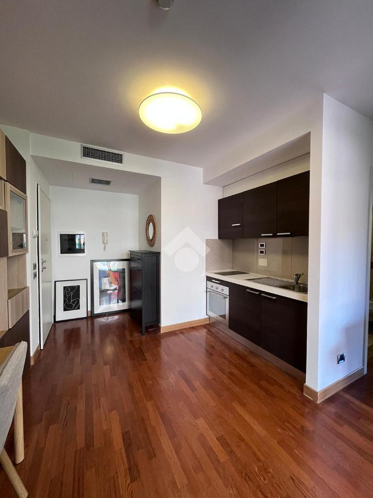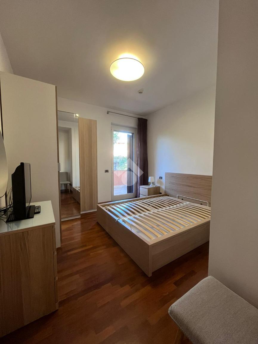 L'immobile si compone di ambienti moderni e luminosi: l'ingresso conduce ad un luminoso soggiorno con cucina a vista; da questo si può accedere alla camera matrimoniale e al bagno in travertino con doccia.