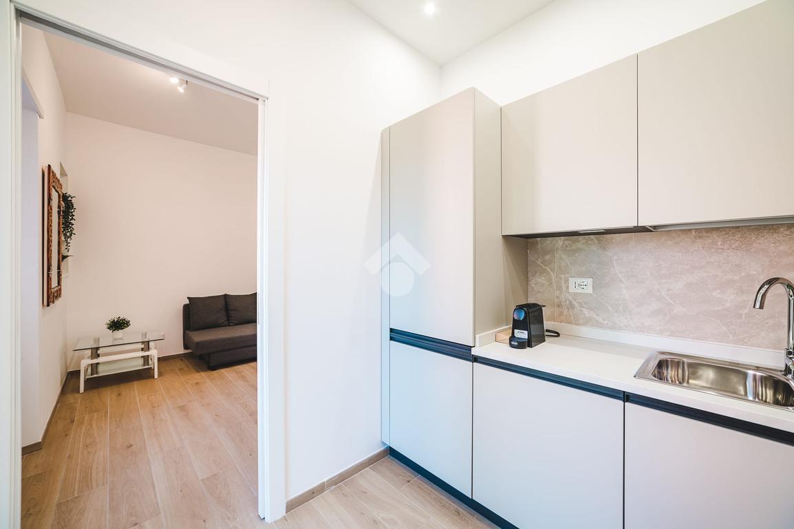 In contesto tranquillo e ben servito, proponiamo in locazione un elegante bilocale completamente ristrutturato, situato al primo piano di una palazzina in ottime condizioni.