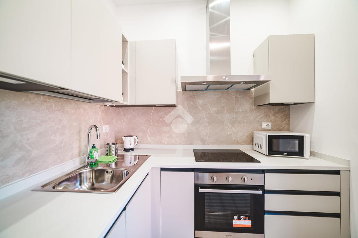 L'appartamento, curato nei minimi dettagli, si compone di un luminoso soggiorno con angolo cottura, una camera da letto matrimoniale, un bagno finestrato moderno e un balcone vivibile. Ogni spazio è stato progettato con attenzione: è presente una comoda zona lavanderia perfettamente integrata e funzionale.