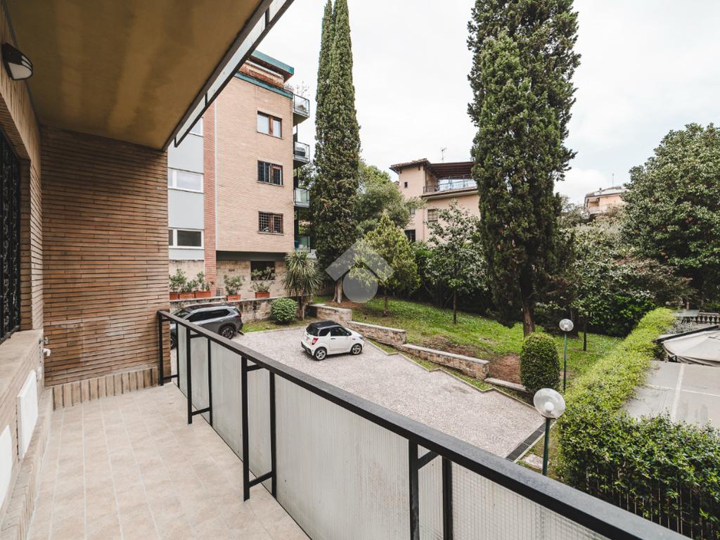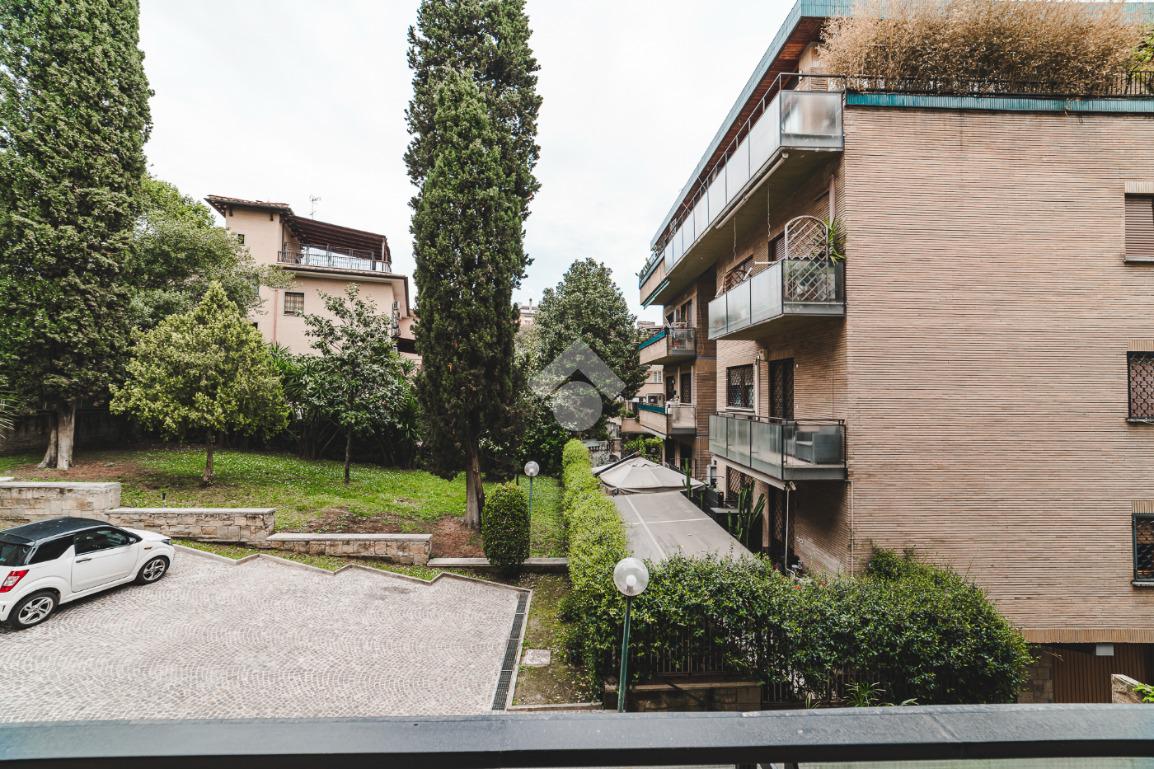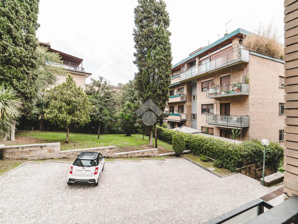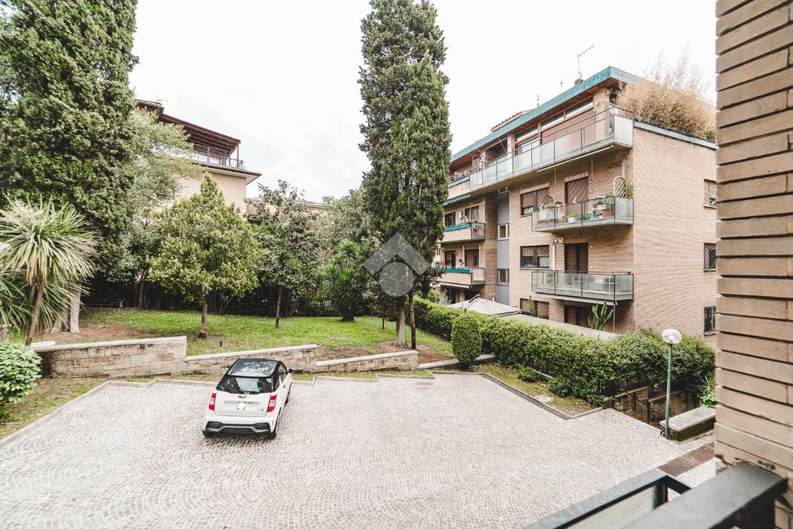 Lo stabile, dotato di servizio di portineria e giardino condominiale, si colloca in un contesto elegante e signorile in una delle aree più tranquille di Roma: Cortina D'Ampezzo è un quartiere che offre il privilegio unico di fare esperienza della Capitale rimanendo però in una delle zone più verdi che la città ha da offrire.