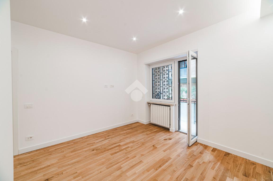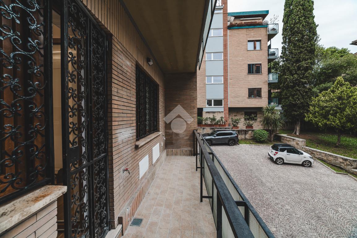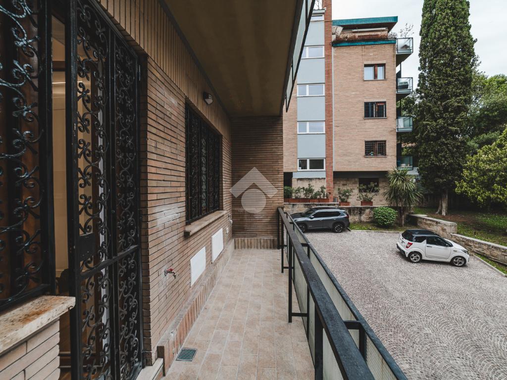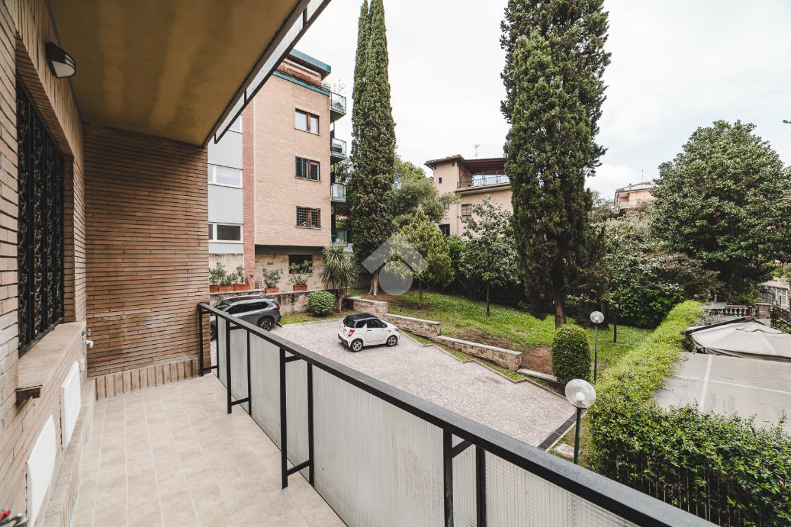 Lo stabile, dotato di servizio di portineria e giardino condominiale, si colloca in un contesto elegante e signorile in una delle aree più tranquille di Roma: Cortina D'Ampezzo è un quartiere che offre il privilegio unico di fare esperienza della Capitale rimanendo però in una delle zone più verdi che la città ha da offrire.