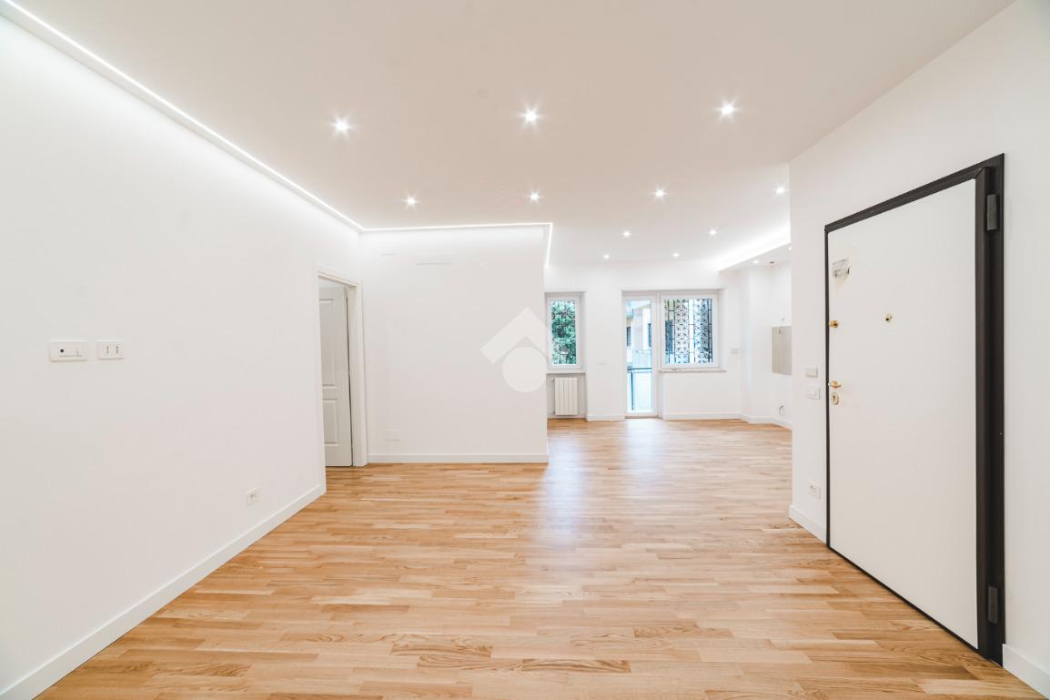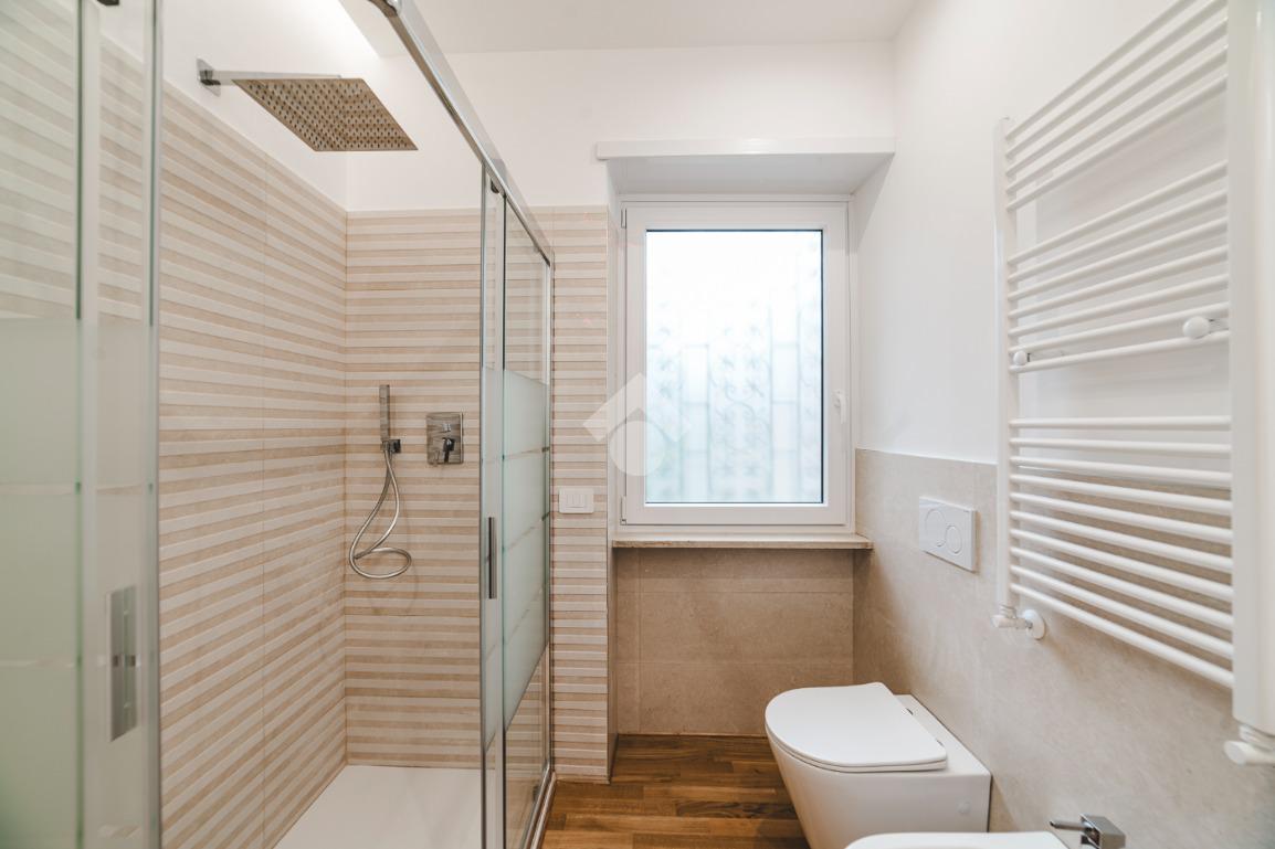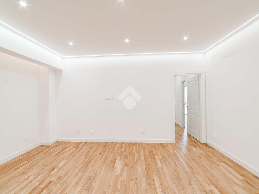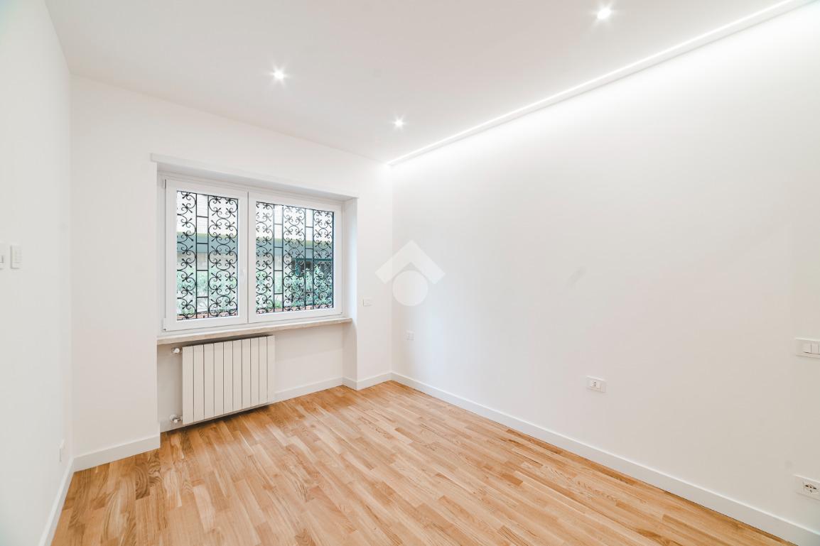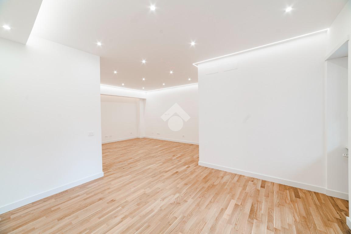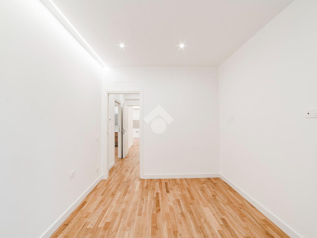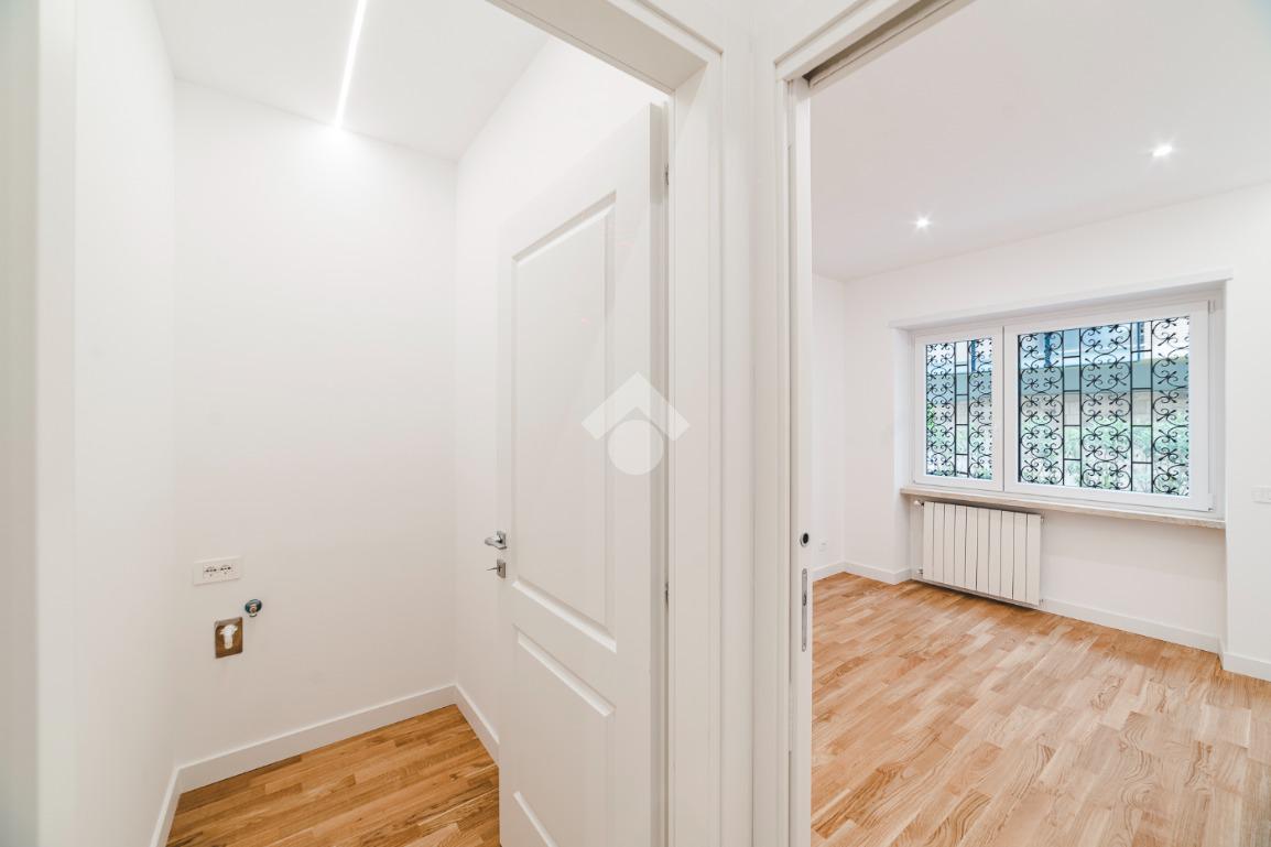 L'appartamento si presenta finemente ristrutturato con materiali di pregio. Gli infissi sono in doppio vetro PVC, ad una o più ante battenti, con la realizzazione di avvolgibili elettrici e predisposizione per aria condizionata. La pavimentazione è in parquet e il riscaldamento è autonomo.