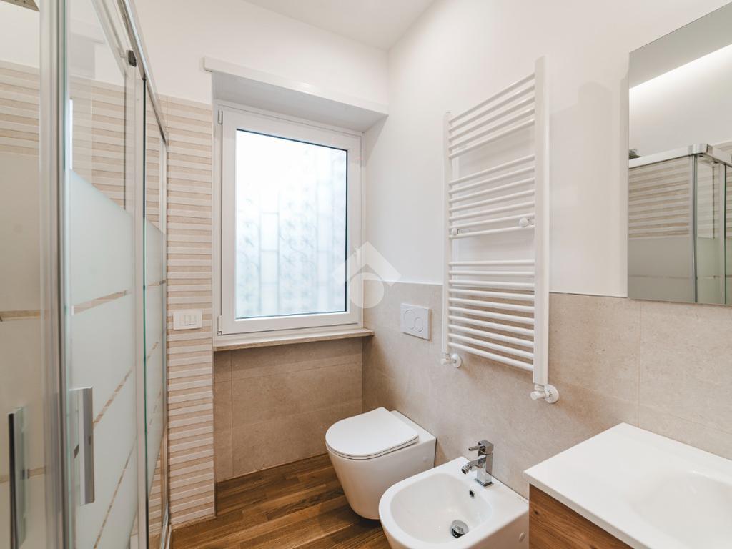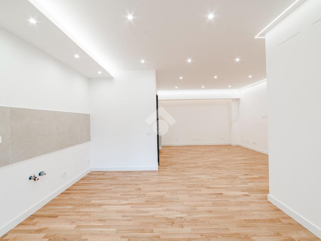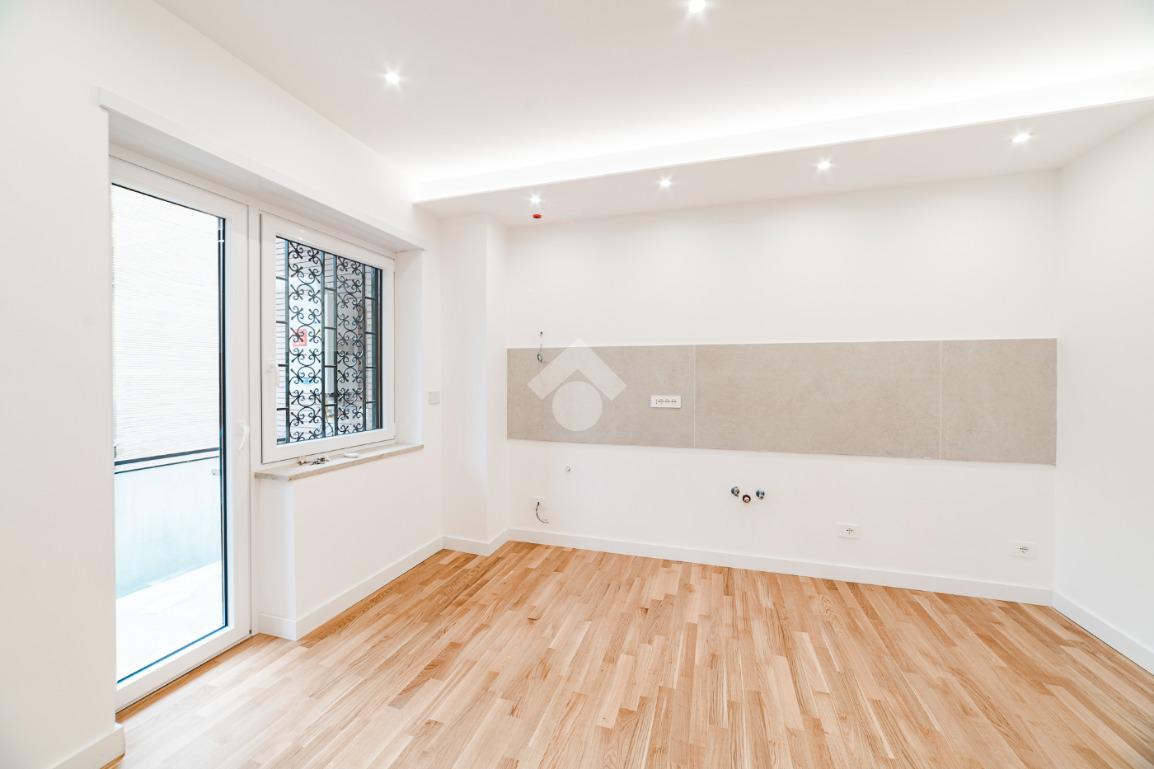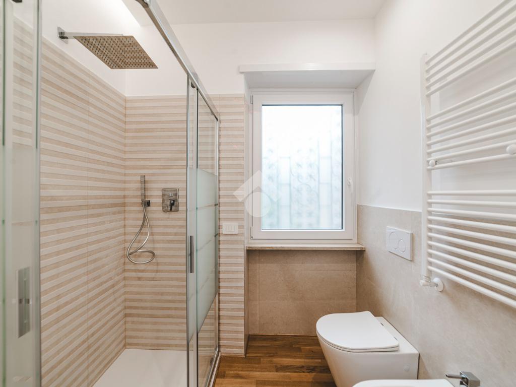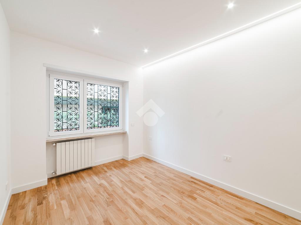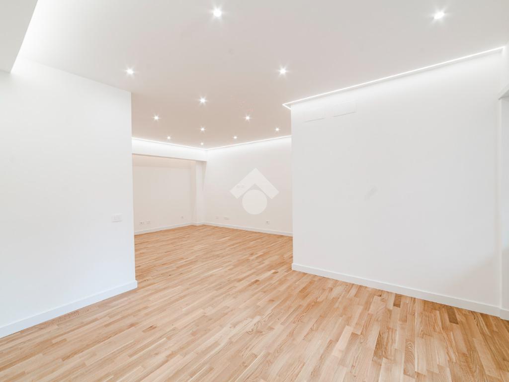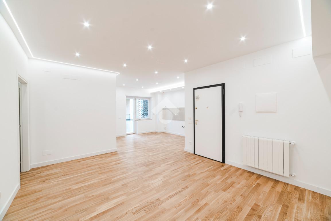L'appartamento si presenta finemente ristrutturato con materiali di pregio. Gli infissi sono in doppio vetro PVC, ad una o più ante battenti, con la realizzazione di avvolgibili elettrici e predisposizione per aria condizionata. La pavimentazione è in parquet e il riscaldamento è autonomo.