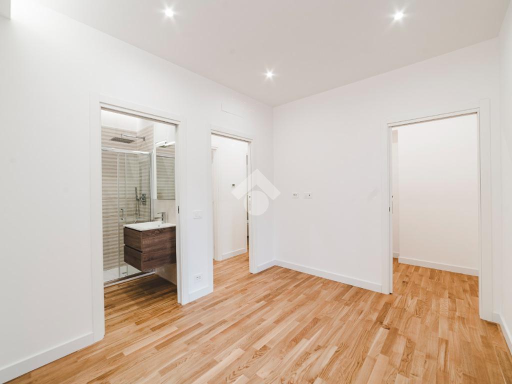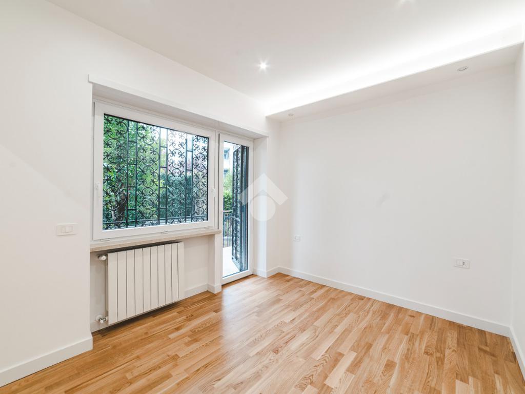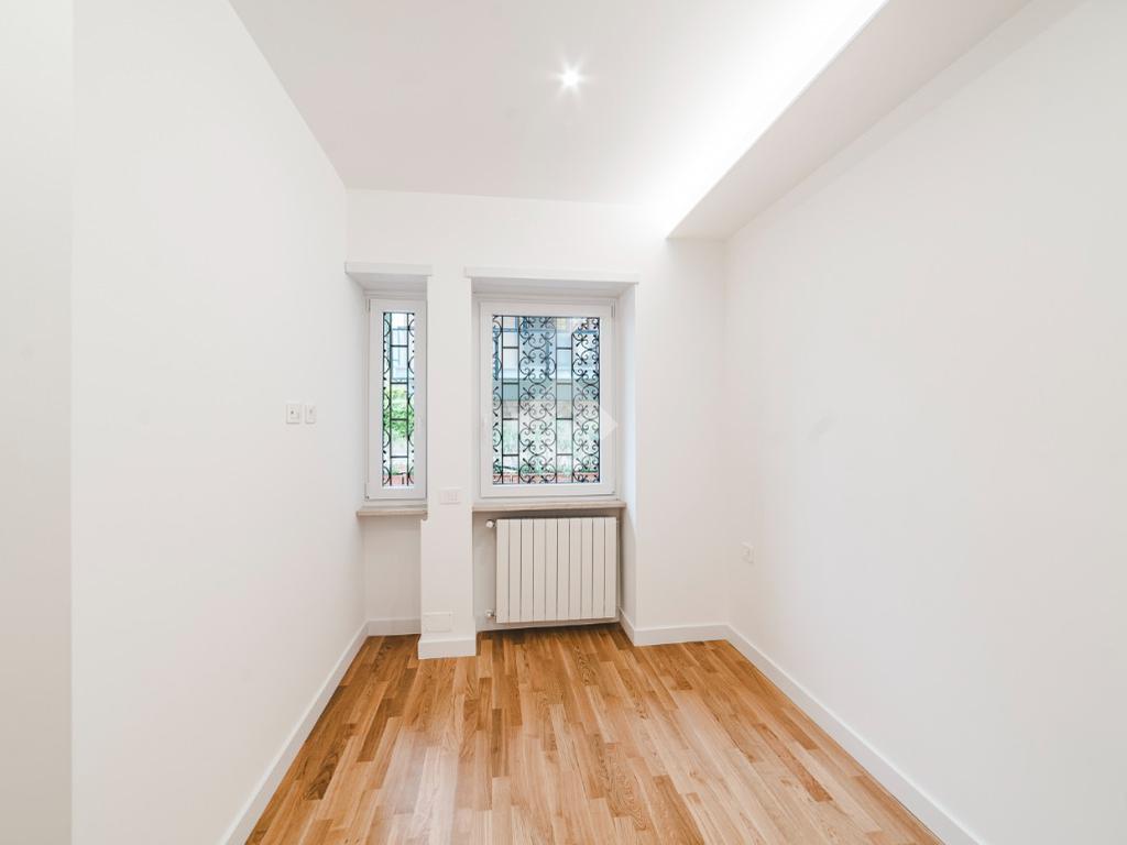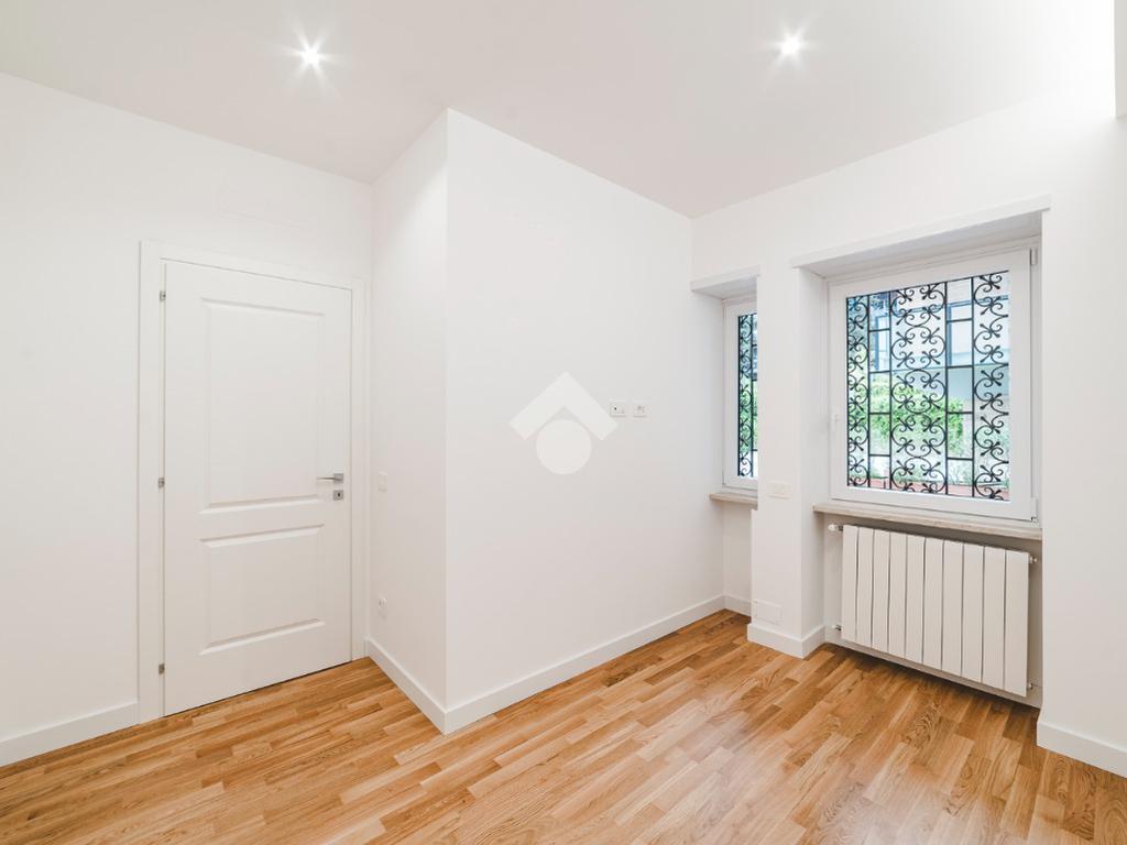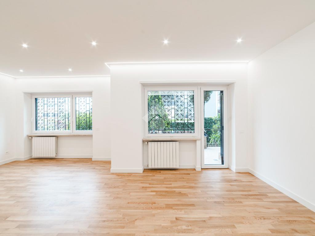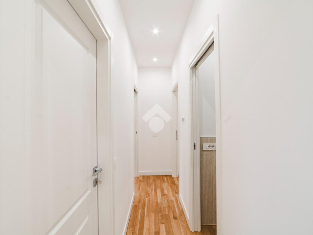 L'appartamento si presenta finemente ristrutturato con materiali di pregio. Gli infissi sono in doppio vetro PVC, ad una o più ante battenti, con la realizzazione di avvolgibili elettrici e predisposizione per aria condizionata. La pavimentazione è in parquet.
