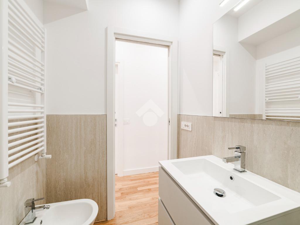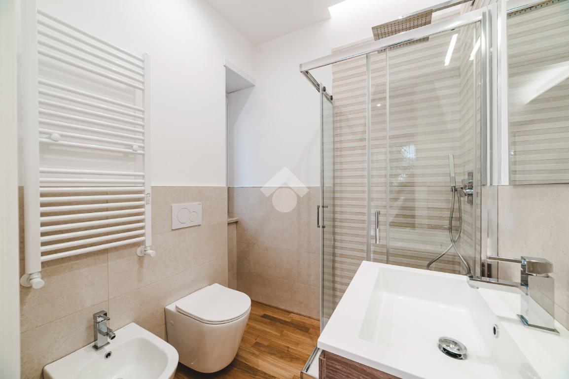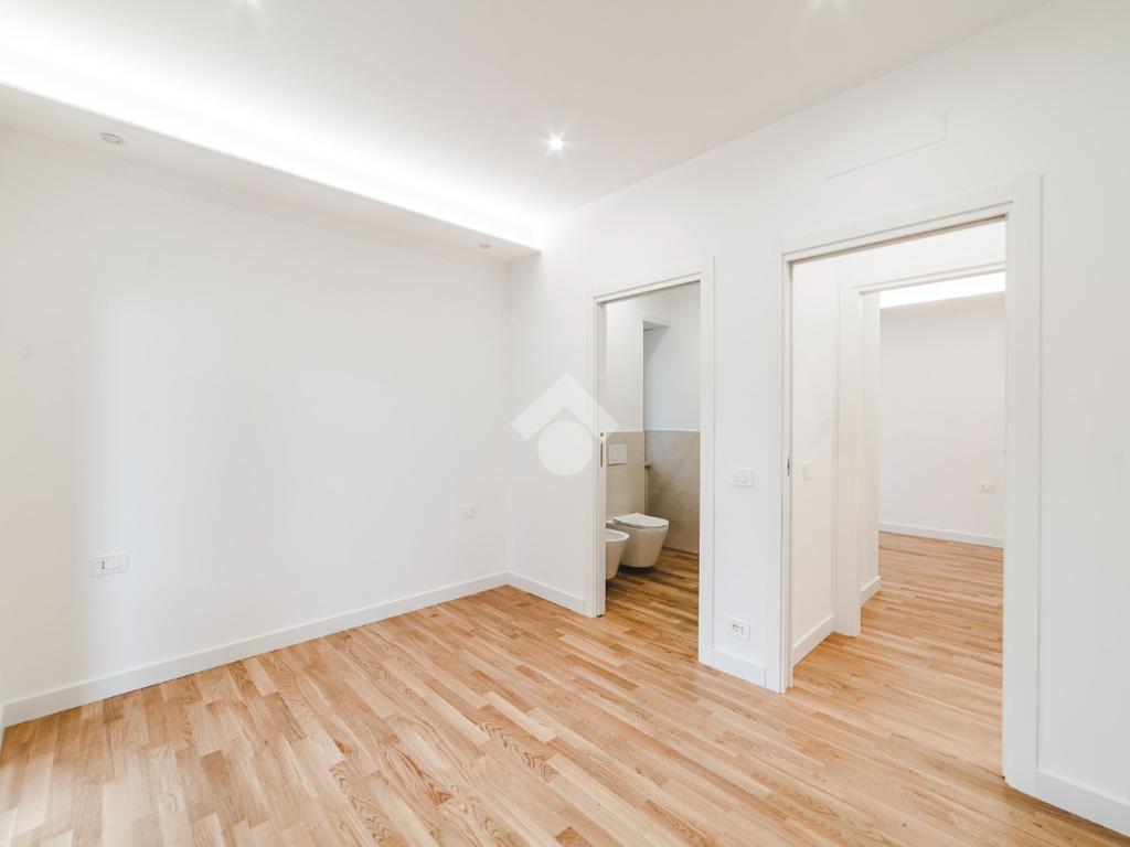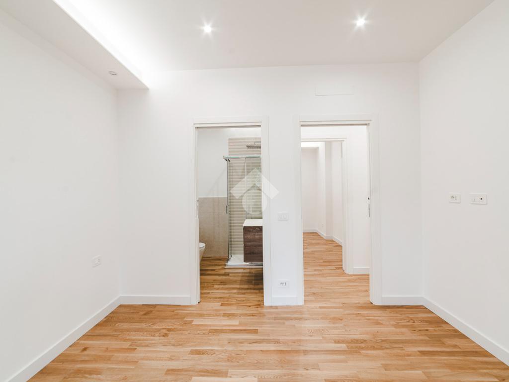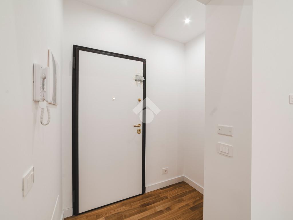 L'appartamento si presenta finemente ristrutturato con materiali di pregio. Gli infissi sono in doppio vetro PVC, ad una o più ante battenti, con la realizzazione di avvolgibili elettrici e predisposizione per aria condizionata. La pavimentazione è in parquet.