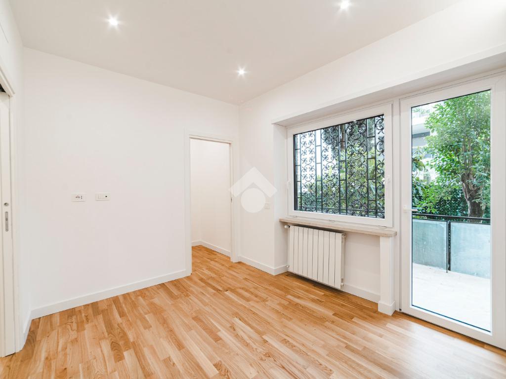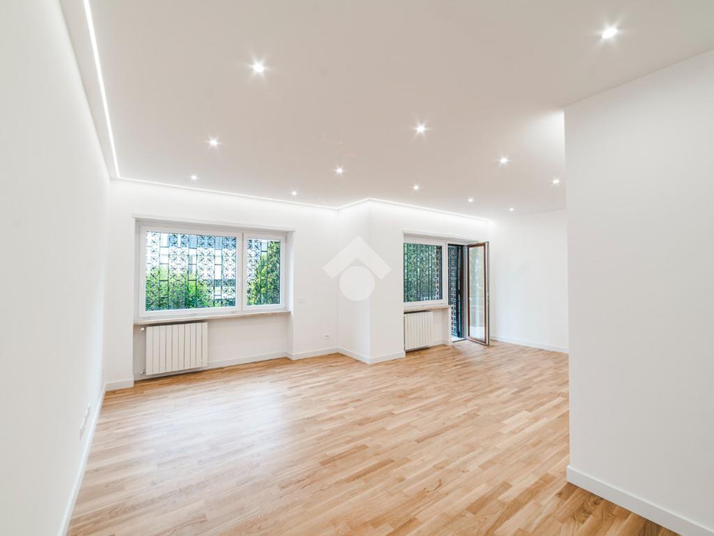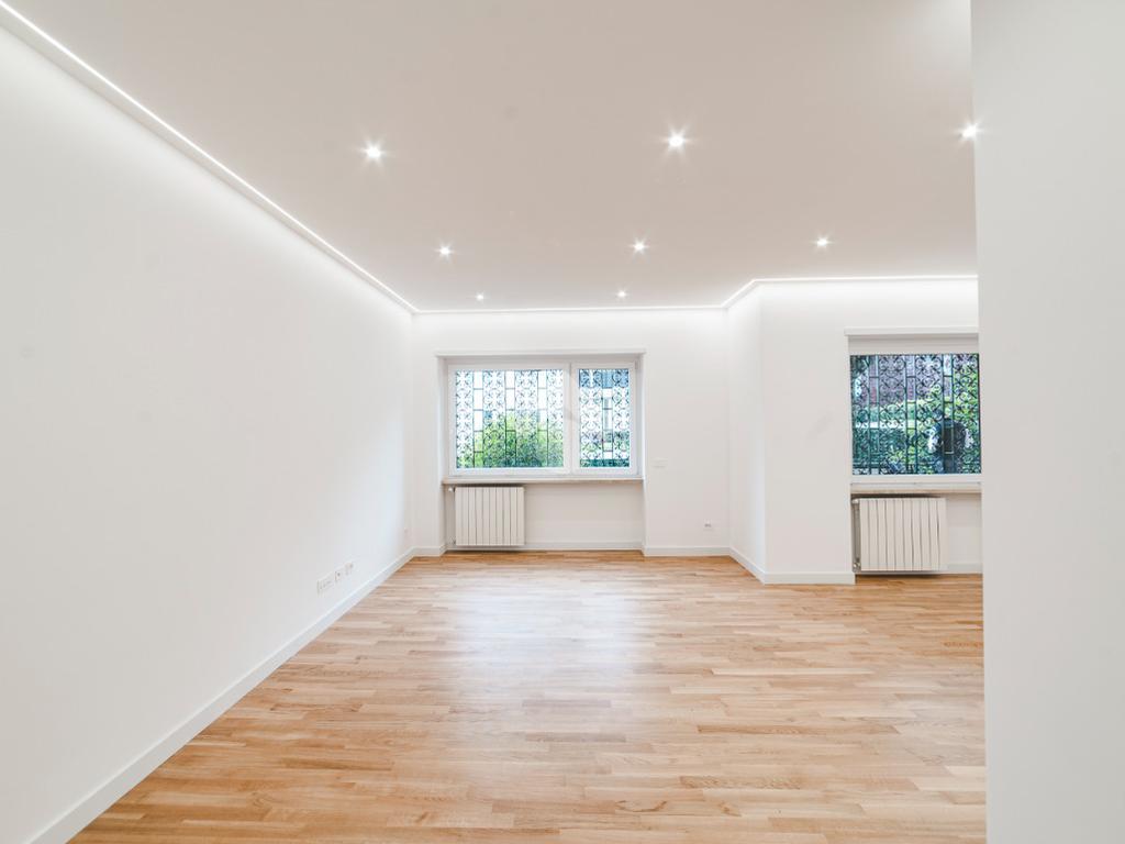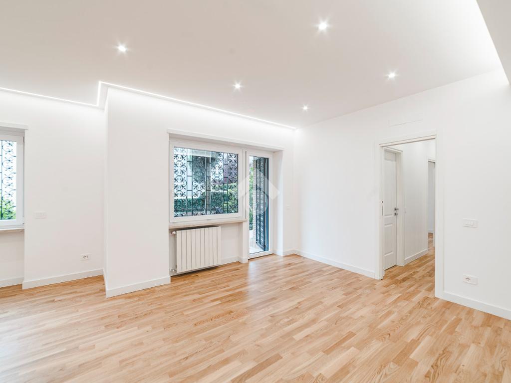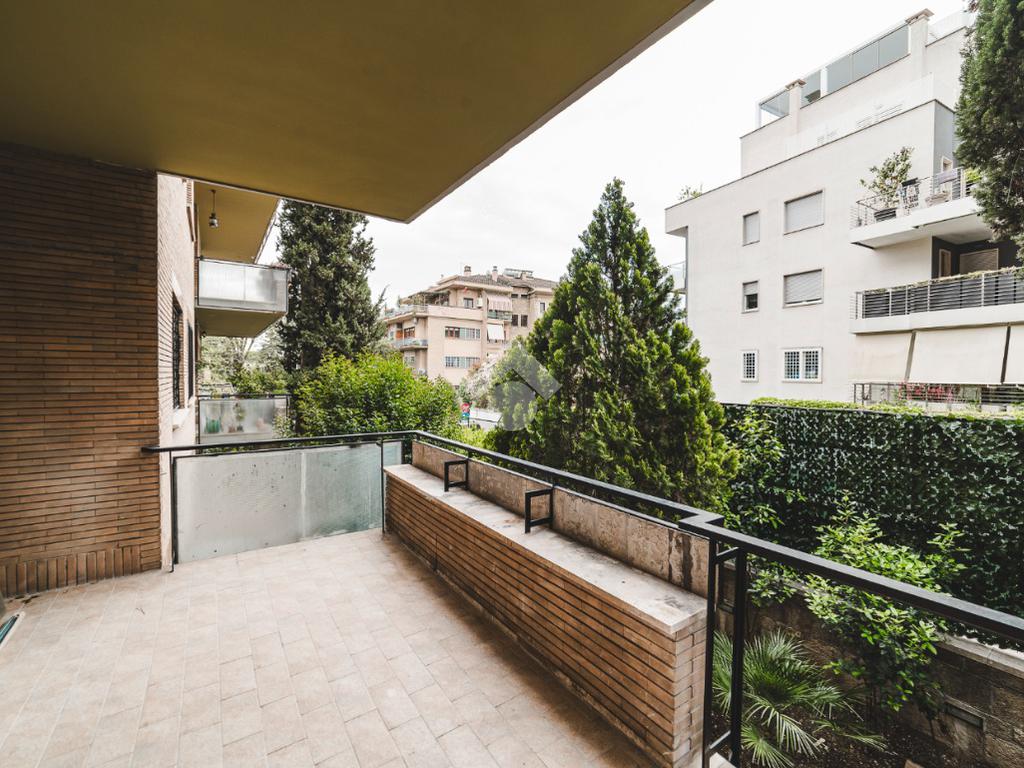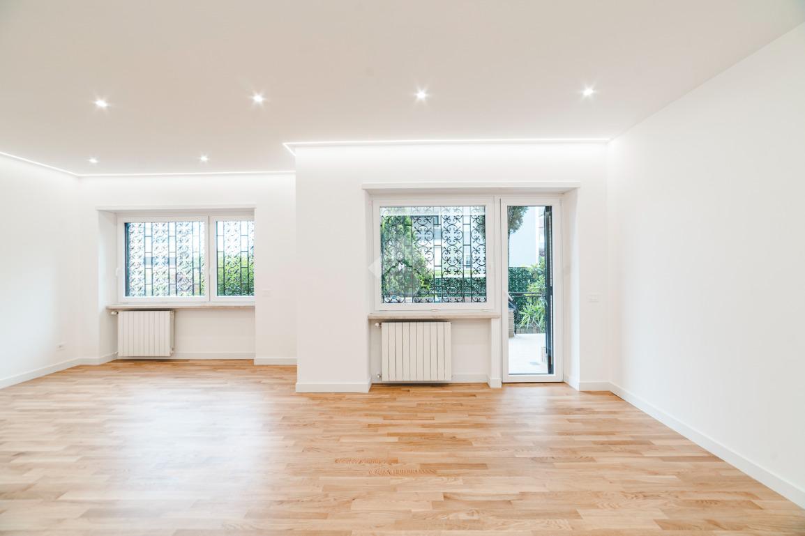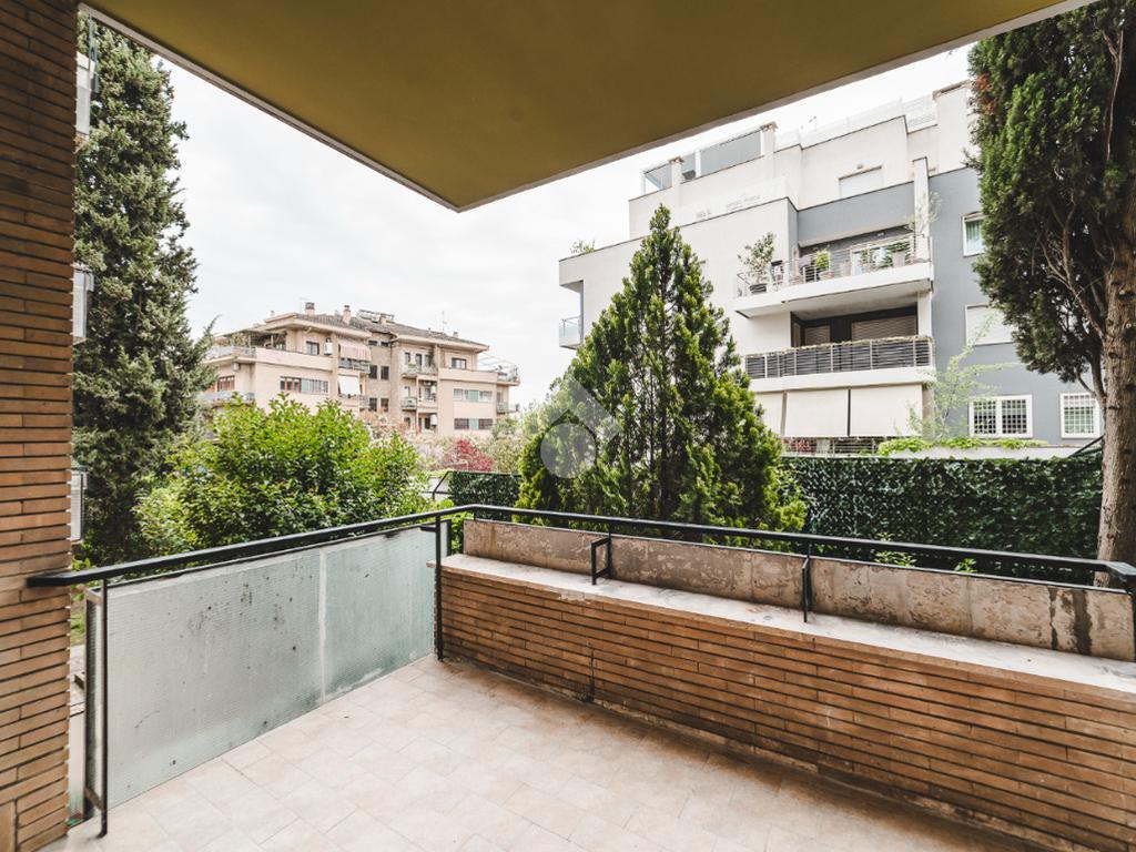 Lo stabile, dotato di servizio di portineria e giardino condominiale, si colloca in un contesto elegante e signorile in una delle aree più tranquille di Roma: Cortina D'Ampezzo è un quartiere che offre il privilegio unico di fare esperienza della Capitale rimanendo però in una delle zone più verdi che la città ha da offrire.