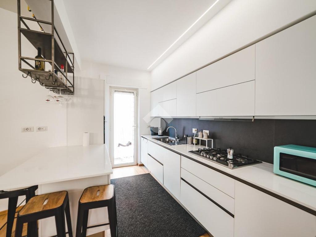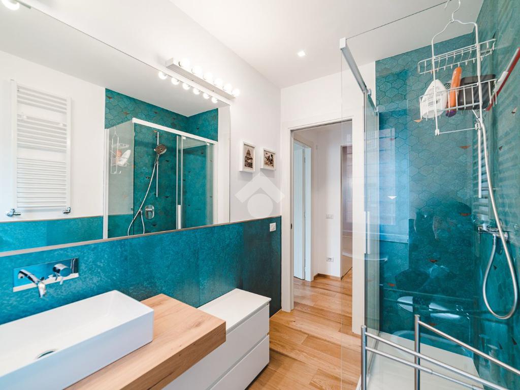 Completano la proprietà un meraviglioso giardino pavimentato, ideale per vivere momenti di relax all’aperto, balcone verandato e cantina di pertinenza.