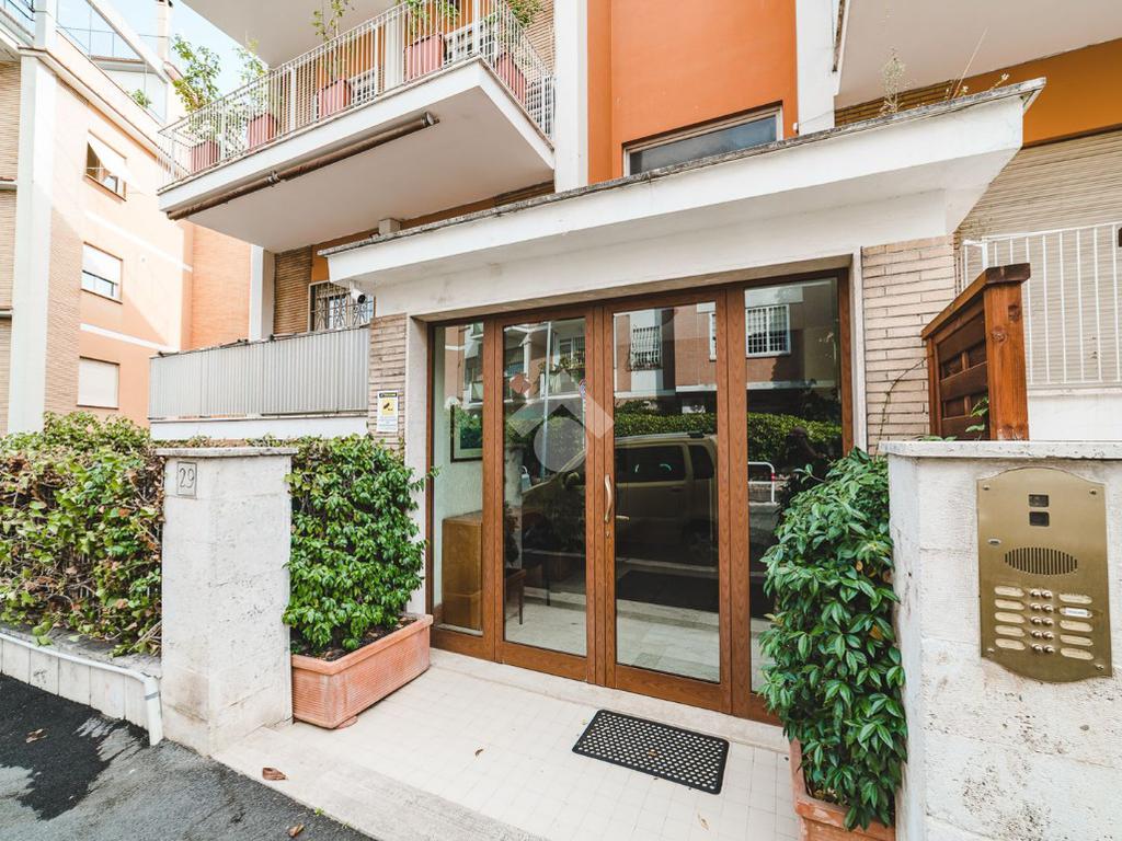 Nel cuore di Vigna Clara, in Via Marco Besso, proponiamo in vendita un signorile appartamento al piano terra con giardino pavimentato privato e cantina, in uno dei contesti più eleganti di Roma Nord.