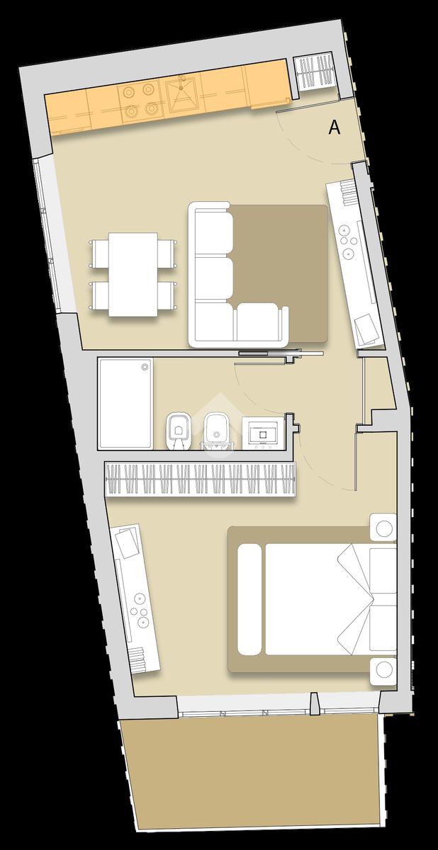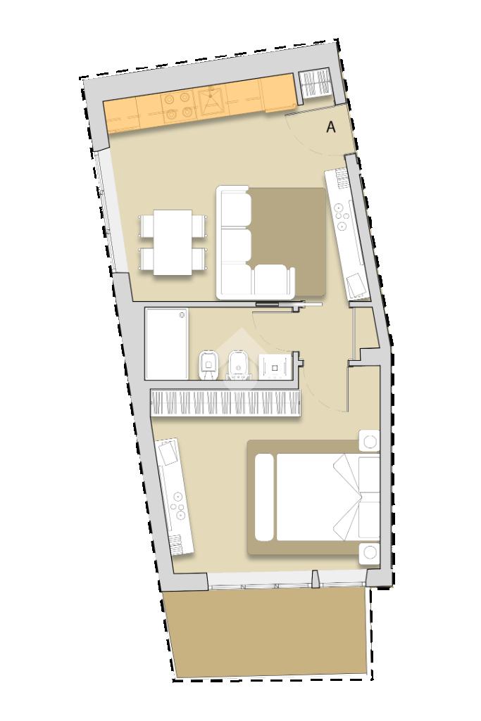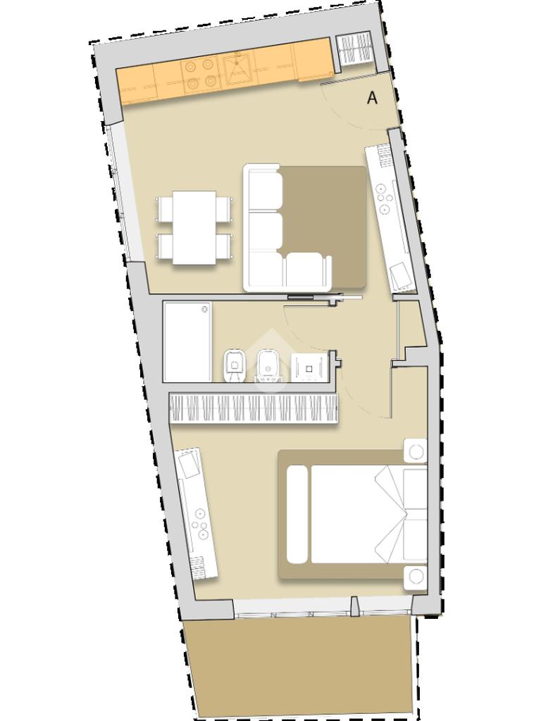 Internamente composto da ingresso, soggiorno con cucina a vista, camera matrimoniale, bagno. Completa la proprietà un balcone abitabile. Possibilità di box auto e cantina apparte.