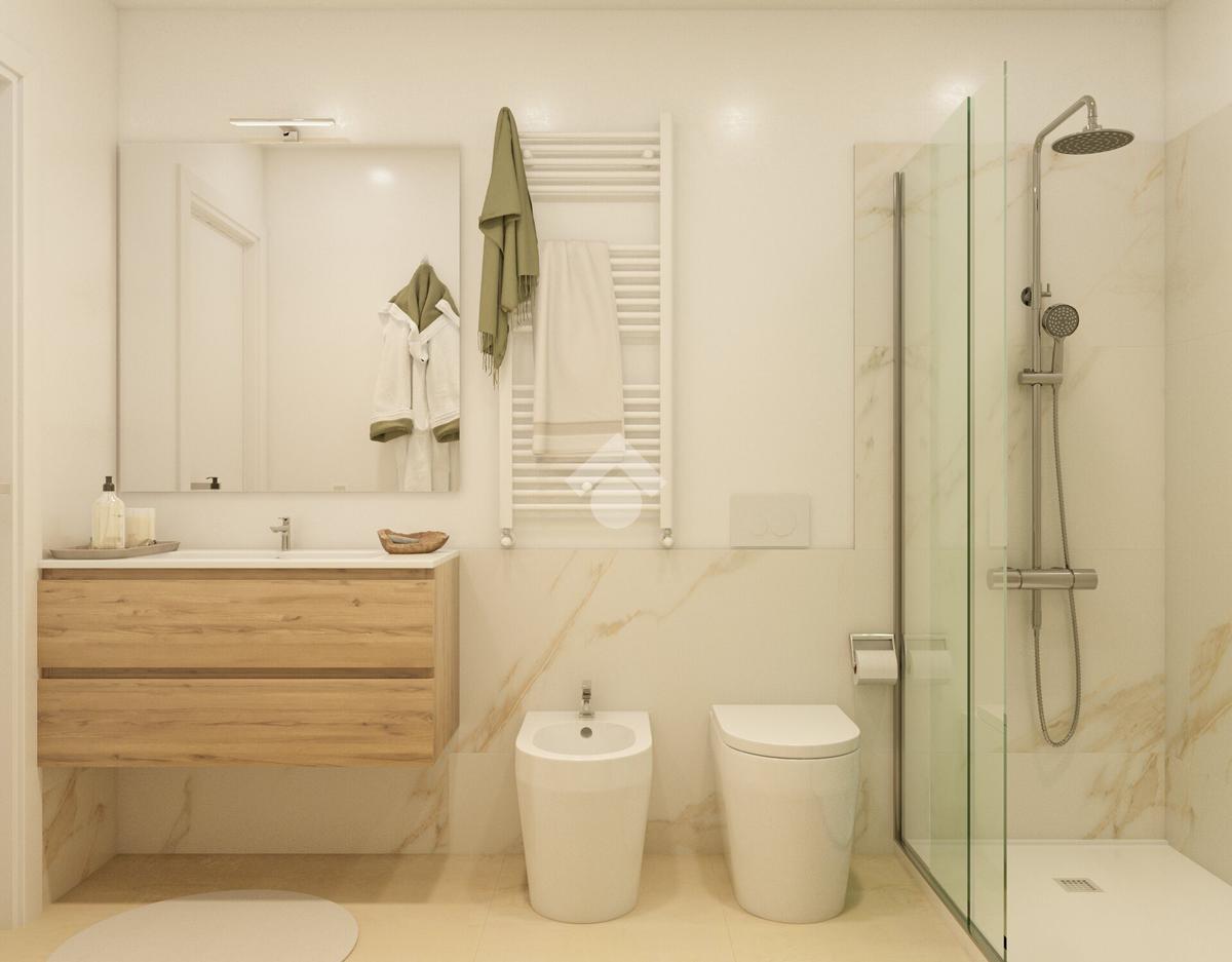 Aria condizionata con funzionalità caldo/freddo; gli ambienti giorno/notte sono climatizzati separatamente;Infissi a bassa trasmissività con apertura a vasistas per il ricircolo dell’aria ed ottimo confort acustico;Isolamento termo/acustico pareti esterne e confinanti;Portoncino di ingresso blindato con cilindro europeo;Cucina completa di elettrodomestici: piano cottura ceramico, frigo con congelatore, lavatrice, lavapiatti e cappa aspirante;Rubinetteria con cartucce ceramiche e sanitaria basso consumo di acqua;Bagni completi di piano lavabo, cassettiere e box doccia;Impianti idrici con chiusure centralizzate;Pavimento in parquet in Rovere naturale(escluso bagno);Gres porcellanato in pasta con altissima resistenza all’usura;Illuminazione led controllata mediante domotica e tagli di luce dedicati;Prese USB a parete;Tapparelle coibentate elettriche;Pittura anti-inquinamento per il miglioramento della qualità dell’aria;Garanzia due anni sugli impianti;Libro Casa Immoveo;Immobile con forme alla Direttiva Europea «CASEGREEN»;ECOIMMOBILE Pronto da abitare